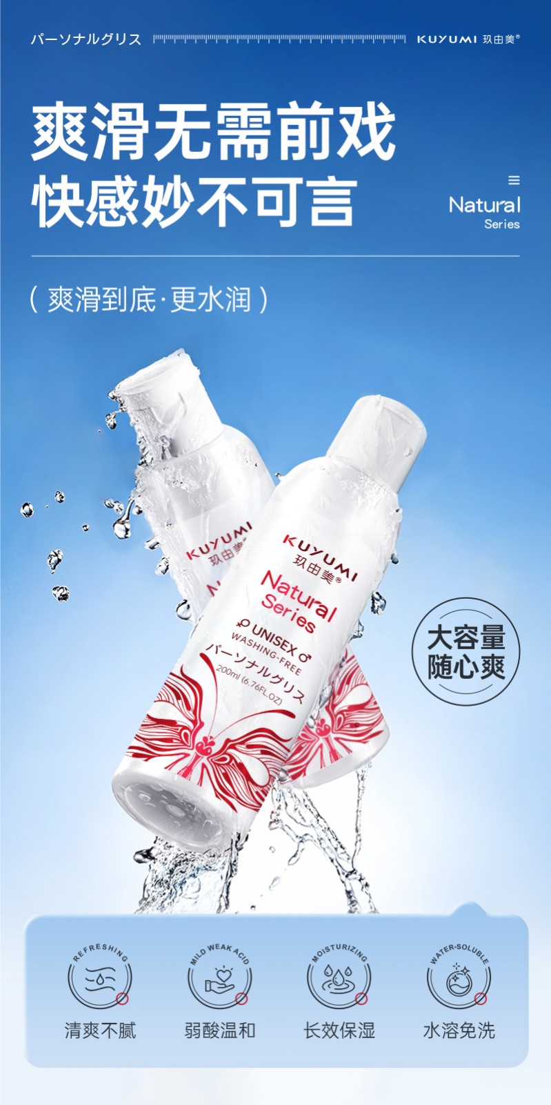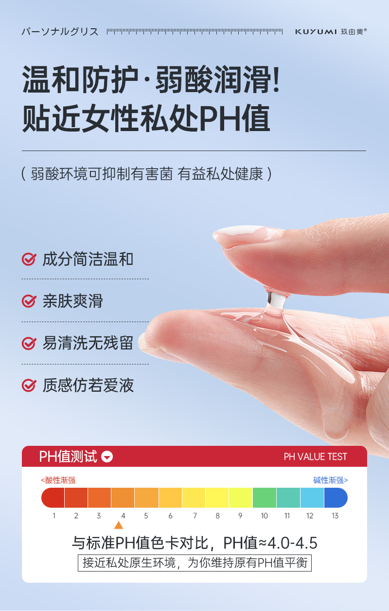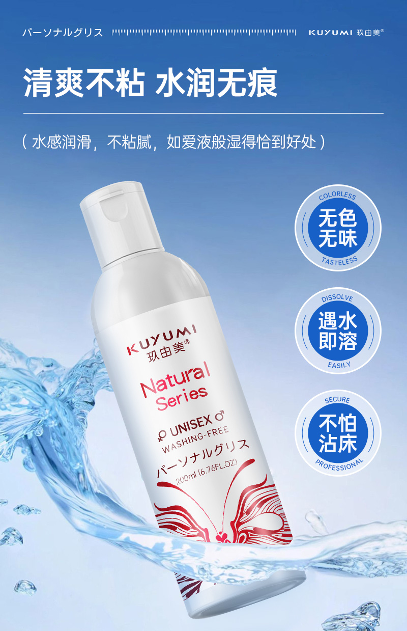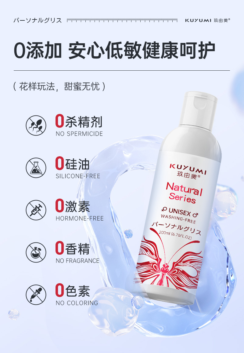 水溶性配方,溫和不致敏,不含礦物油、酒精、色素、殺精劑等有害物質(zhì)