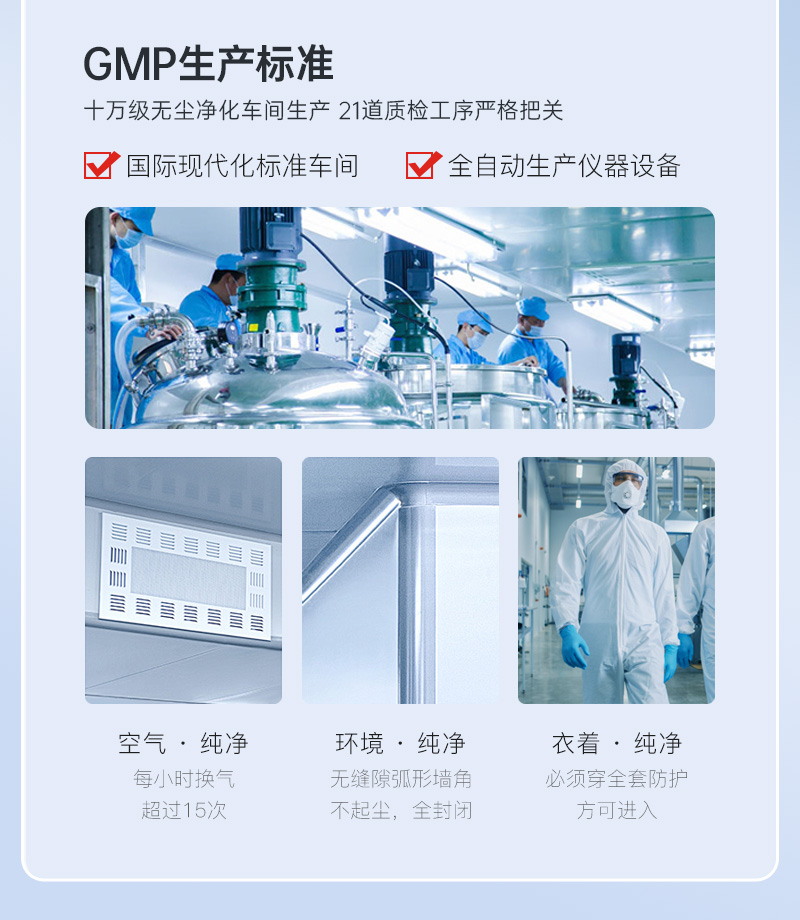 嚴(yán)格按照GMP生產(chǎn)規(guī)范!生產(chǎn)前原材料檢測(cè),確保原料合格。生產(chǎn)中半成品檢測(cè),確保生產(chǎn)過(guò)程無(wú)污染。生產(chǎn)后產(chǎn)品檢測(cè)并且出具出廠檢測(cè)報(bào)告,確保產(chǎn)品符合標(biāo)準(zhǔn),從原料到成品層層把關(guān),確保每一件均為精品。200ml大容量,1瓶頂2瓶!